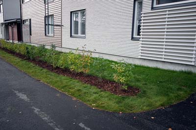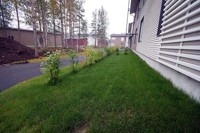 Taloyhtiö osti pensaiden juureen katetta, joten sen värkkäsin paikoilleen. Helpottaa huomattavasti leikkaamista, kun ei tarvi pujotella pensaiden välissä (ennenkuin tuosta aita muodostuu). Multaa on 15 kuutiota tuossa talon vieressä, mutta vielä en ole keksinyt sille käyttötarvetta. Tosin se jaetaan asuntojen kesken, mutta jää siitä silti noin reilu puolikuutiota meille 🙂