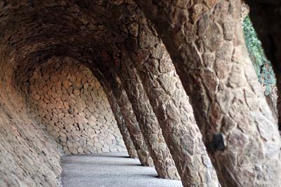 Kirkolta kierros jatkui Gaudin suunnittelemalle kukkapenkille, elikkä Güellin puistoon. Jokunen kuva sieltä jäi talteen ja tässä yksi sellainen. Sieltä näki hyvin myös merelle, mutta näkyvyys oli kohtuullisen huono vaikka aurinko paistoikin: