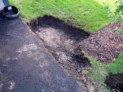 Multaa kävin hakemassa muutaman säkin, että sai paikattua asvaltin reunassa huonosti kasvavaa nurmikkoa. Yhdessä kohtaa lapio kalahti johonkin kovaan ja sieltä löytyi tämmönen. On siinä saanut ihmetellä, miksei nurmikko kasva. Sonell oli näköjään unohtanut asvaltit nurmikon alle: