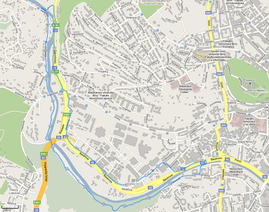 Tuli vaihteeksi käytyä uudessa maassa työreissulla, eli Tsekeissä. Prahaan lenneltiin ja sieltä ajeltiin Brno kaupunkiin ja pari päivää siellä. Työkaverin kanssa käytiin keskiviikkona aamu ja iltalenkit juoksentelemassa. Alla kuva illan lenkistä kartalla (reilu 8km). Kivan aurinkoinen keli ja joku 15 astetta lämmintä oli.