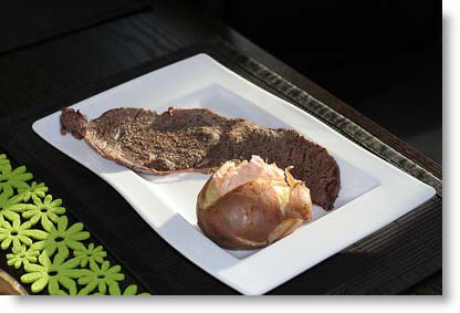 Tänään oli lehtipihvin vuoro uuniperunan kera.
