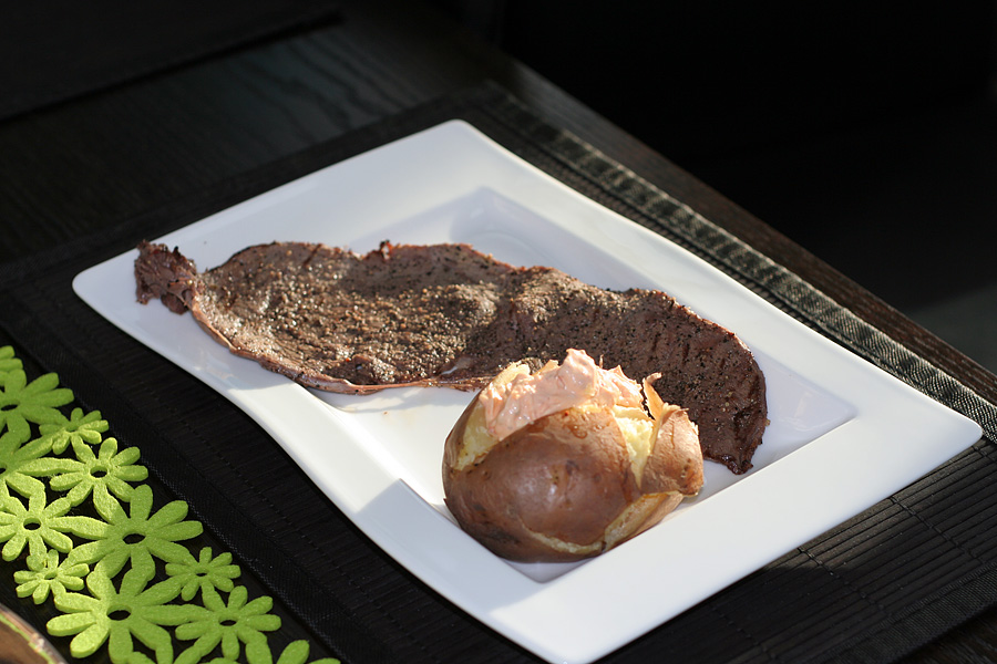 Tänään oli lehtipihvin vuoro uuniperunan kera.