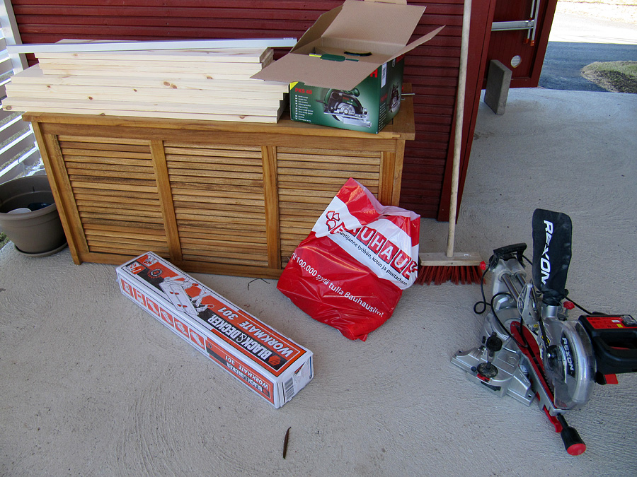 Tänään haettiin baariarkkua varten tarvikkeet kaupasta. Puuttuvia työkaluja piti myös vielä ostaa. Sirkkeliksi löytyi todella pieni ja kätevä Bosch PKS 40 sirkkeli. Laite painaa vain 2,4 kiloa, kun ne yleensä painaa sen 4-5 kiloa pystymättä kuitenkaan sen parempaan hommaan. Ostin vielä tuollaisen työpöydän, kun sellaistakaan ei ollut ja jokusen puristimen liimausta varten.