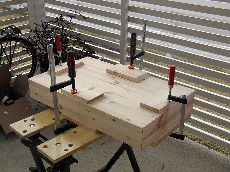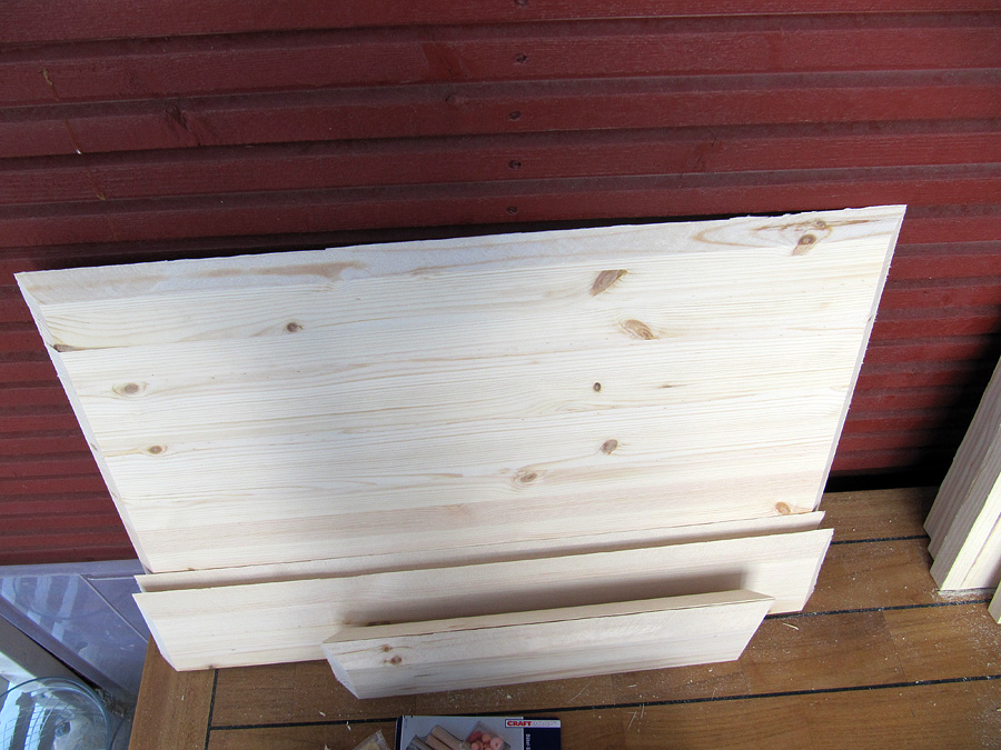 Laatikon seinät sahattuna jiiriin. Alaosan seinät on 24 milliä ja muut seinämät on 18 millistä mäntyä.