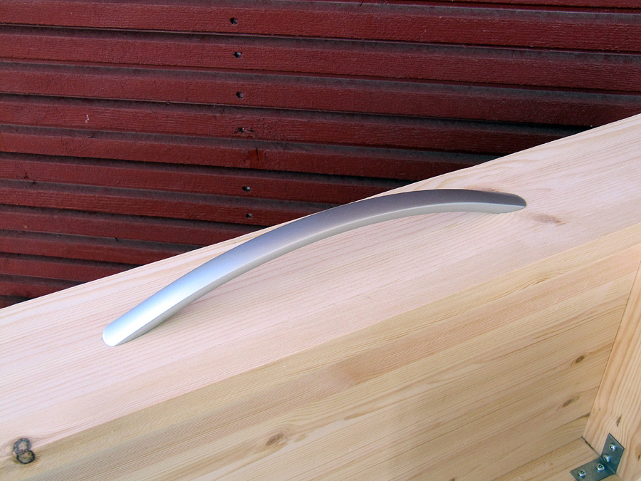 Eilen jatkoin arkun rakentamista töiden jälkeen. Tässä kahvan mallailua paikoilleen.