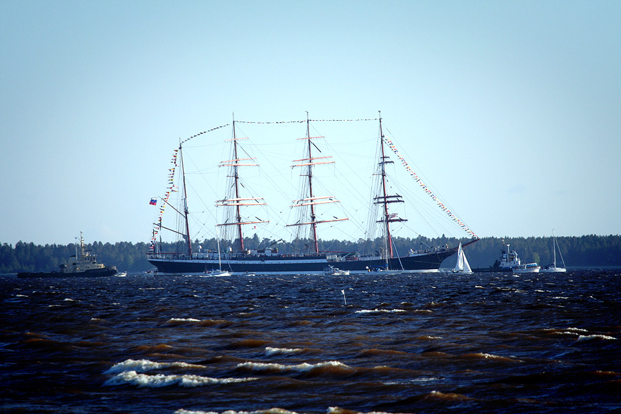 Oulussa vieraili viikonloppuna iso purjelaiva STS Sedov. Laiva oli Oritkarin satamassa laiturissa viikonlopun, mutta ei jaksettu lähtä tuhansien ihmisten kanssa jonotteleen laivaan pääsyä. Eilen kävästiin Nallikarissa katsomassa, kun laiva lähti.