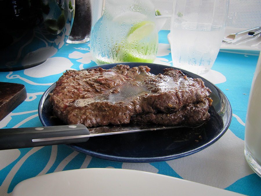 Ja grilli toki lämpeni tänäänkin ja pihvit paisteltiin. Kuuma tais olla fileilläkin, kun tuollalailla hikoilivat.