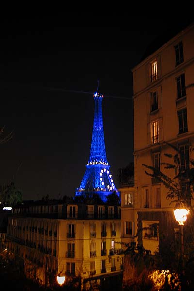 Eiffelille en jaksanut kävellä tällä kertaa. Auringon laskettua sattui tötterö näkymään aina silloin tällöin pienen matkan päästä. Tässä kuva yhdeltä kantilta.
