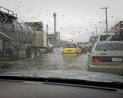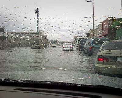 Takaisin kotona, tai no tulin jo itseasiassa tiistaina. Kaveri tuli hakemaan kentältä Meksikossa ja kun oltiin ajelemassa pois päin niin jouduttiin ruuhkaan. Aikansa kun madeltiin ruuhkassa niin selvisi, miksi autot ei ihan omaa kaistaa pitkin voi ajaa. Tuolla sitten laineiden liplatuksessa ajeltiin (kelluuttiin) menemään, mutta onneksi ei auto haukannut vettä ja pysyi käynnissäkin kokoajan. Mitä nyt vähän höyryä välillä tuli konehuoneesta ja ikkunaan.