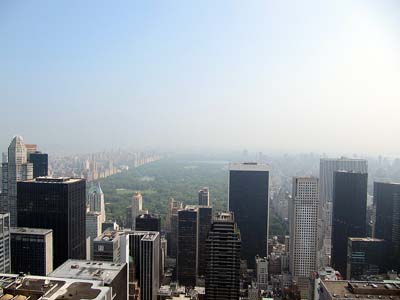 New Yorkin toinen päivä alkoi sillä, että menimme Rockefeller centerin huipulle katselemaan Manhattania yläilmoista. Koska olin jo aikaisemmin käynyt Empirellä, niin valittiin nyt tämä torni. Kuumuudesta johtuen näkyväisyys oli aika heikko tuolta yläilmoista.