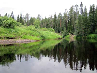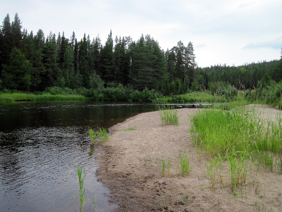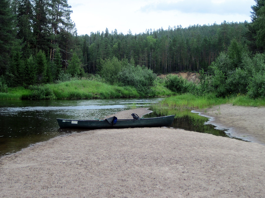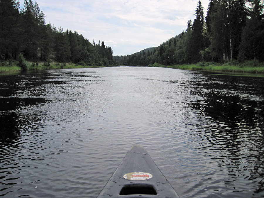 Launtaina ajeltiin Kiutakönkään kosken kupeeseen, joka sijaitsee Oulungan opaskeskuksen liepeillä. Siellä meitä odotti rantatörmällä vuokraamamme kanootti. Kanootti vesille ja varusteet vedenpitävään varustesäkkiin ja melomisen pystyi aloittamaan. Ei ole kauheana tullut melottua, mutta jotenkuten sitä päästiin eteenpäin alun haparoimisen jälkeen 🙂