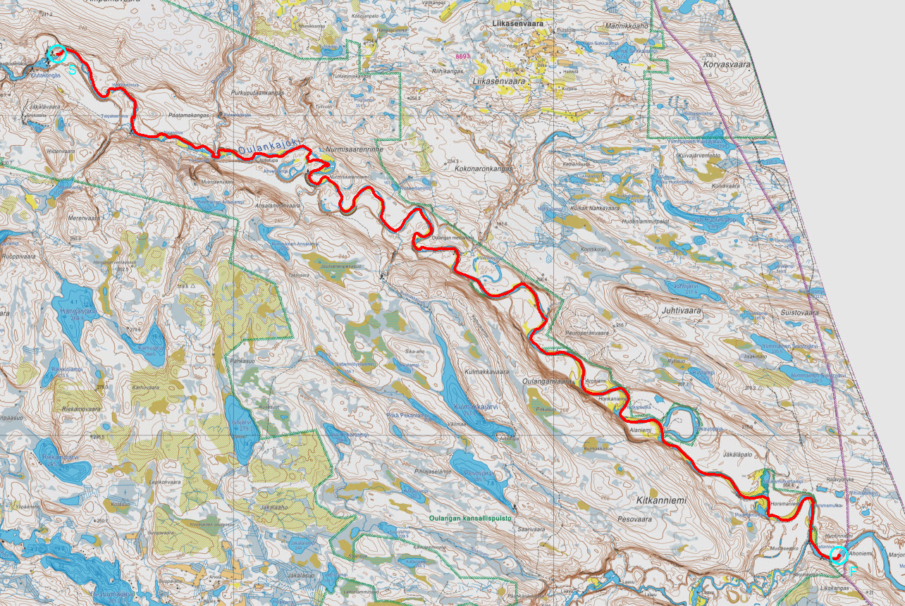 Riippusiltoja pitkin ylitettiin Kitkajoki jokusen kerran